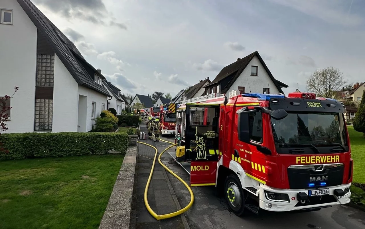 Als die Feuerwehr ankam, hatte sich der Kellerbrand bereits ausgedehnt. Vier Rettungswagen sowie die hauptamtlichen Kräfte und Einheiten aus Mitte und Remmighausen der Feuerwehr Detmold waren vor Ort, um die Lage zu bewältigen. Der Einsatz dauerte gut zwei Stunden.