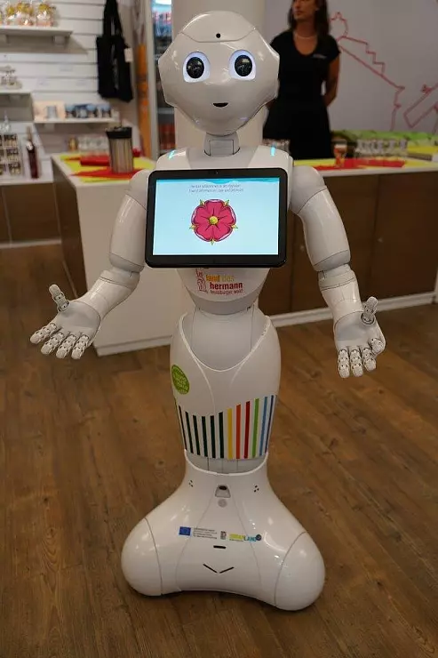 „Seit einem Jahr ist die Tourist-Info zurück im Rathaus in den neu gestalteten Räumen, die durch Fördermittel des Programms ,Zukunftsfit Digitalisierung im Wortsinn zukunftsfit gestaltet worden sind. Dazu gehören neben Pepper unter anderem interaktive Bodenprojektionen und ein haptisches Modell der Detmolder Landschaft, auf das vom Nutzer per Knopfdruck unterschiedliche Informationen über die Tourismusdestination projiziert werden können“, erklärt die Stadtverwaltung in der Pressemitteilung.