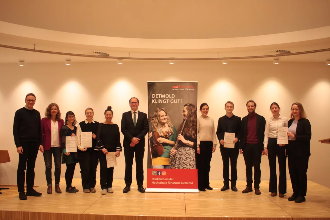 Detmold. Die Hochschule für Musik Detmold hat die Preisträgerinnen und Preisträger des Wettbewerbs „Unternehmen: Musik“ ausgezeichnet. „Dank Ideengeber Dr. Arend Oetker, der das Preisgeld über die Hochschulstiftung zur Verfügung gestellt hatte, wurden sechs wegweisende Projekte mit insgesamt 15.000 Euro prämiert“, schreibt die Hochschule in einer Pressemitteilung. Ziel des Wettbewerbs sei es, Studenten in ihrer unternehmerischen Kreativität zu fördern und sie dabei zu unterstützen, eigene berufliche Perspektiven zu entwickeln.Die Jury, bestehend aus den Hochschulangehörigen Prof. Katharina Höhne-Grotheer, Prof. Dr. Aristotelis Hadjakos und Jelka Lüders, Ute Welscher vom VAN-Magazin und Matthias Carl von der Industrie- und Handelskammer Lippe zu Detmold, hätten die innovativsten und überzeugendsten Ideen ausgewählt.