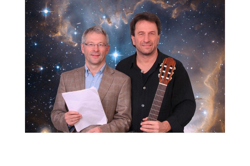 Außerdem „malen“ der Pianist David Plüss und Matthias Dörsam mit Saxophon undKlarinette ihre Klangbilder zu den eindrucksvollen Einblicken in unser Weltall.