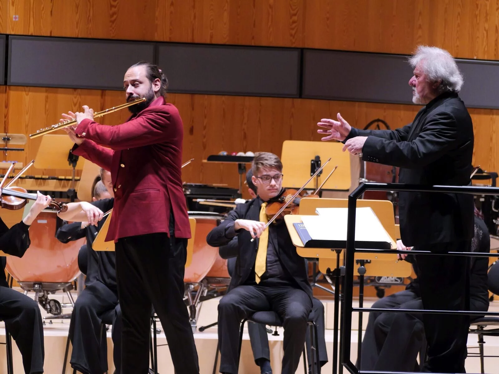 Mit François Bornes „Fantasie Brillante“ nach Themen aus Bizets Carmen war dann die Bühne frei für Karapanos, dessen Spiel sich als makellose Verbindung von technischer Virtuosität und expressiver Phrasierung erwies. Seine Flöte sang, jubelte und verführte – in einer Leichtigkeit, die mitunter an Zauberei grenzte. Die Habanera war ein Höhepunkt seiner Interpretation im fluiden Spiel wie aus einem Guss. In facettenreicher Tongebung und trotz hochvirtuoser Eskapaden stand er im besten Dialog mit dem Orchester.