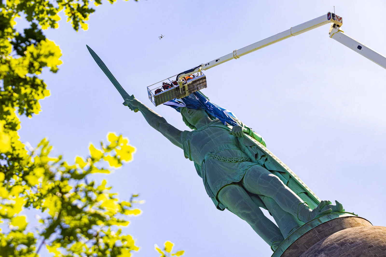 Das Denkmal war übers Wochenende gesperrt worden, weil starke Windströmungen herrschten und das Trikot die Gefahr noch einmal vergrößerte, dass sich Material vom Denkmal lösen könnte. Das passierte jedoch nicht. Deshalb gab es am 26. Mai Entwarnung.