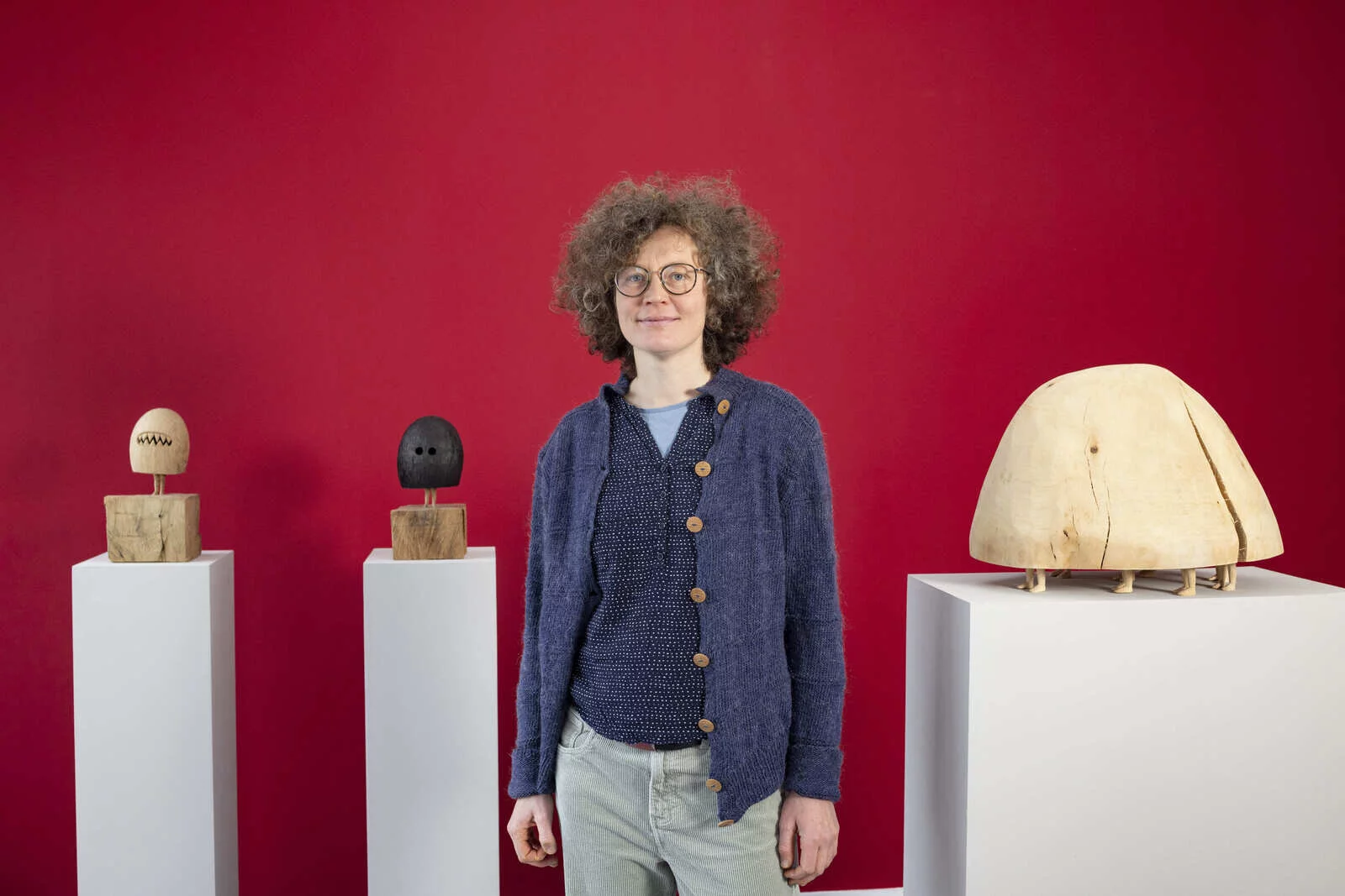 Es liegt viel Wärme in der Art, wie sie die Figuren herstellt und wie sie vor allem das Händische, das Handgemachte in diesem rot-violetten Refugium der Galerie zeigt. Daniela Schönemann bringt uns mit ihrer Ausstellung zum Umdenken, denn sie vermisst ihr Material mit einem Gestaltungsspaß, der in der modernen Kunst selten geworden ist. Die neue Ausstellung in der Galerie Mellies ist ein kleines Requiem aus vielen klingelnden Tönen, die von überall in den beiden Räumen der Galerie herkommen. Eine Gute-Laune-Dusche voller Holzsplitter, Rissen und Geschliffenem, voller spürbarer Freude. Aber auch ein Bekenntnis zu Handwerk und Tradition, ein flammendes Plädoyer für das natürliche Material.