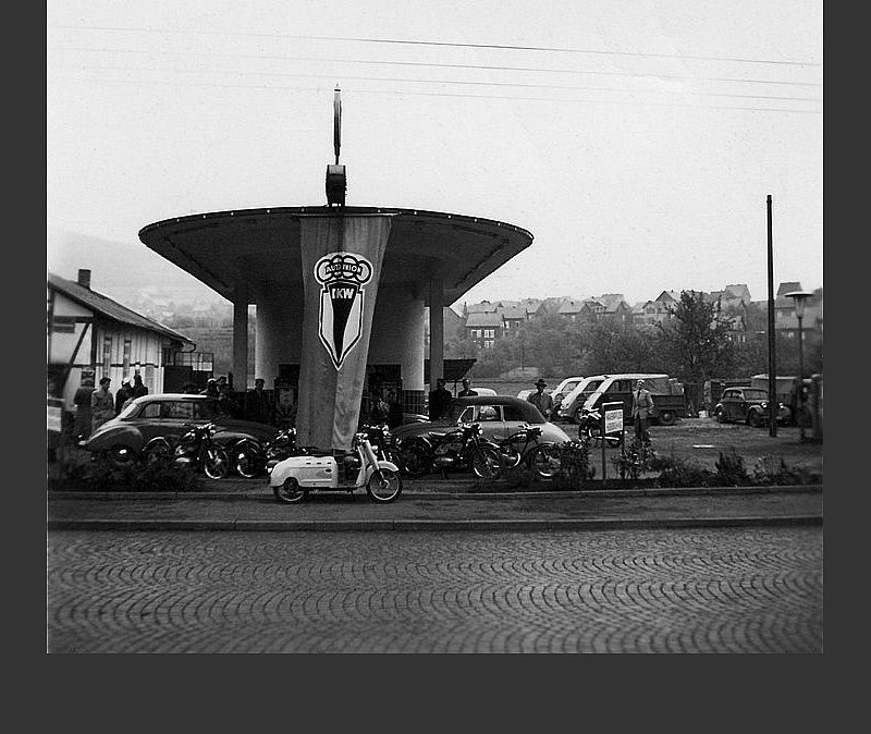 Auf einen Tieflader verladen, werden die einzelnen Teile der Tankstelle auf die Reise geschickt. Das ist aber noch einige Wochen hin. Zunächst wird das bereits in sieben Teile zerschnittene Betondach der Service-Station abgenommen und zwischengelagert. Dann sollen nacheinander die einzelnen Tankstellen-Teile von ihrem Ursprungsort entfernt und aufgeladen werden. In Detmold wartet bereits ein Platz im "Siegerländer Weiler" des LWL-Freilichtmuseums auf die Tankstelle. Sie soll dort wieder aufgebaut werden und zeigen, wie die Mobilität das Leben in den westfälisch-lippischen Dörfern ab den 1950er-Jahren veränderte.