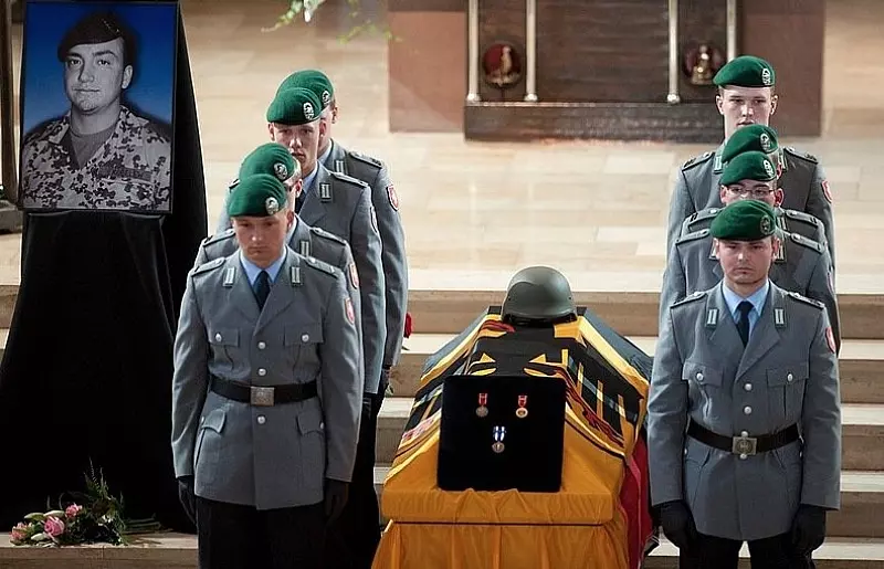 Der 23-Jährige war am 2. Juni bei einem Sprengstoffattentat auf seinen Schützenpanzer südlich von Kundus ums Leben gekommen. Bei dem Anschlag wurden fünf weitere Soldaten verwundet, einige von ihnen nahmen an der Trauerfeier für ihren Kameraden teil. Sie alle gehören zur Augustdorfer Panzerbrigade "Lipperland" 21. Derzeit sind rund 1.100 der 4.200 Soldaten der Panzerbrigade 21 in Afghanistan im Einsatz.Der in Russland geborene Soldat war seit Anfang März in dem Krisengebiet. Am Tag des Anschlags hatten die Soldaten den Auftrag, entlang einer Hauptverbindungsstraße nach Sprengfallen zu suchen. Bei dem Attentat hätten die Taliban "eine gewaltige Sprengstofffalle von wohl 200 Kilogramm ausgelöst", sagte de Maizière. So etwas brauche gründliche Vorbereitung.