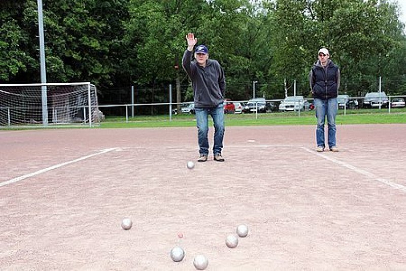 In Diestelbruch wird traditionell im "Triplette" gespielt, bei dem drei Spieler ein Team bilden und jeder von ihnen zwei Kugeln wirft. "Es gibt unterschiedliche Strategien und Wurftechniken für die jeweiligen Spielsituationen", erklärte Jörg Helweg aus der Meistermannschaft, dass es beim Boule durchaus auch um taktisches Verständnis gehe.
