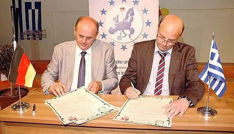 Oraiokastro/Detmold. Am späten Samstagabend haben die Bürgermeister Rainer Heller und Dimitrios Saramantos den Partnerschaftsvertrag zwischen Detmold und dem griechischen Oraiokastro unterschrieben. Die Reihen der Stadthalle in Oraiokastro waren beim Festakt dicht gefüllt.
