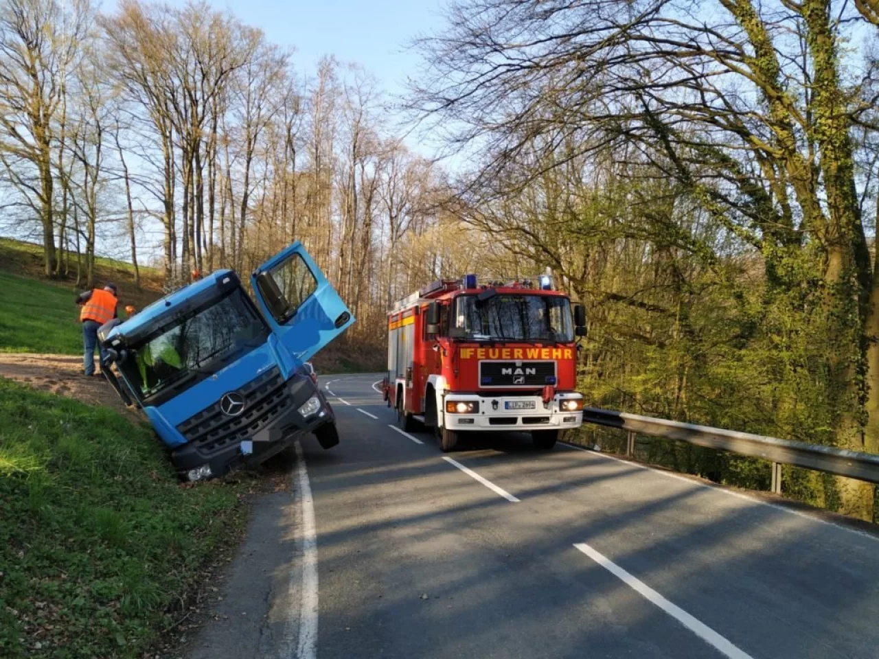Dörentrup-Humfeld. Am frühen Dienstagabend wurde die Feuerwehr Dörentrup zu einem Unfall auf der Alverdisser Straße zwischen Alverdissen und Humfeld gerufen. Dort war gegen 18 Uhr ein Lkw auf die Bankette geraten und in den Straßengraben gerutscht. Ein Teil der Kies-Sand-Ladung war abgekippt.