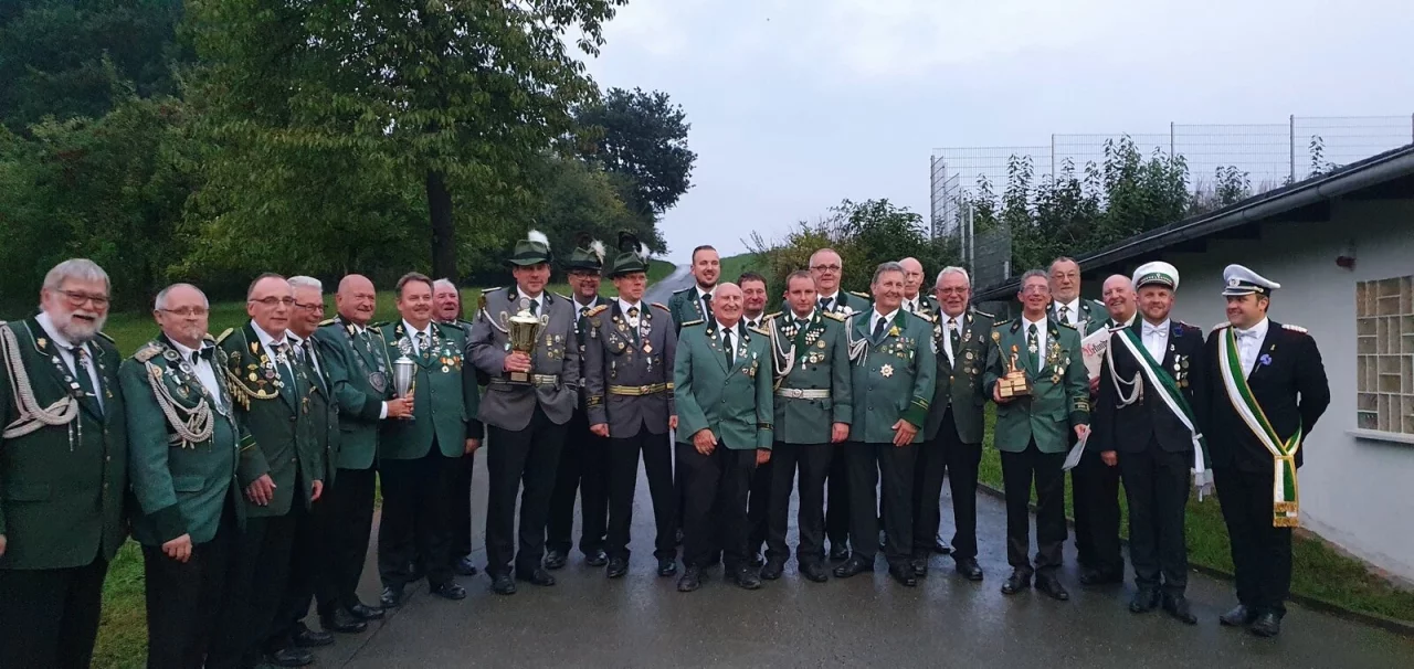 Ehrenoberst Bernd Szameitat, Bataillionskommandeur Herbert Hohmeier und Vorsitzender Friehelm Plöger begrüßten die Teilnehmer und wünschten gut Schuß. Ursprünglich trafen sich nur die Obristen zu sportlichen Wettkampf und Erfahrungsaustausch. Dann kamen die Adjudanten dazu, später wurde der Teilnehmerkreis um die Könige mit ihren Adjudanten und die Vereinsvorsitzenden erweitert.