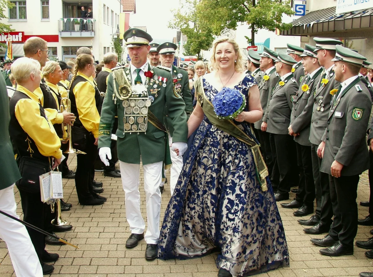Im Anschluss an die Ansprachen schritten die Majestäten die Reihen der angetretenen Schützen ab. Nachdem das Königspaar und der Hofstaat die Plätze in ihrem Wagen eingenommen hatten, startete der große Festumzug. Musikalisch begleiteten diesen der Spielmannzugs Bega, das Sonneborner Blasorchesters sowie einige weitere Musikkapellen.