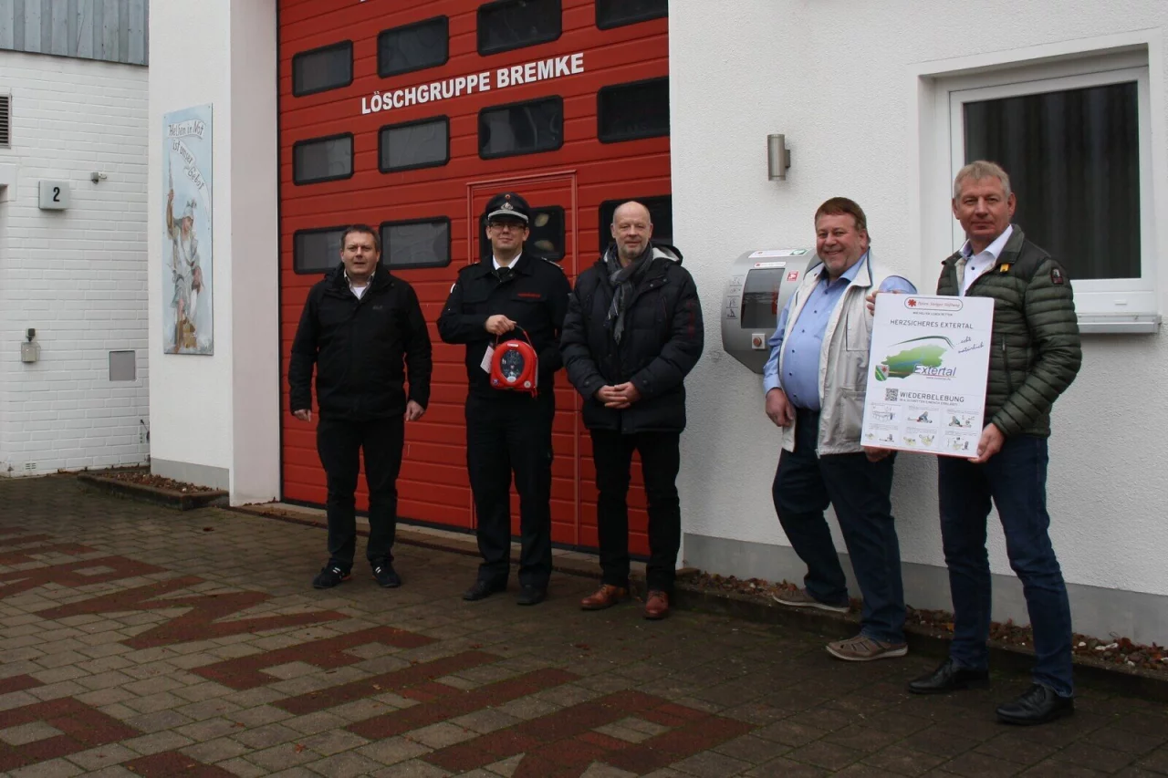 Extertal. In der Gemeinde Extertal sorgen vier öffentlich zugängliche Defibrillatoren ab sofort für mehr Herzsicherheit: Mit automatisierten externen Defibrillatoren (AED) können Ersthelfer im Falle eines plötzlichen Herzstillstandes Leben retten. Im Rahmen der „Herzsicher“-Initiative“ der Björn-Steiger-Stiftung wurden die AED-Geräte offiziell an Bürgermeister Frank Meier übergeben.