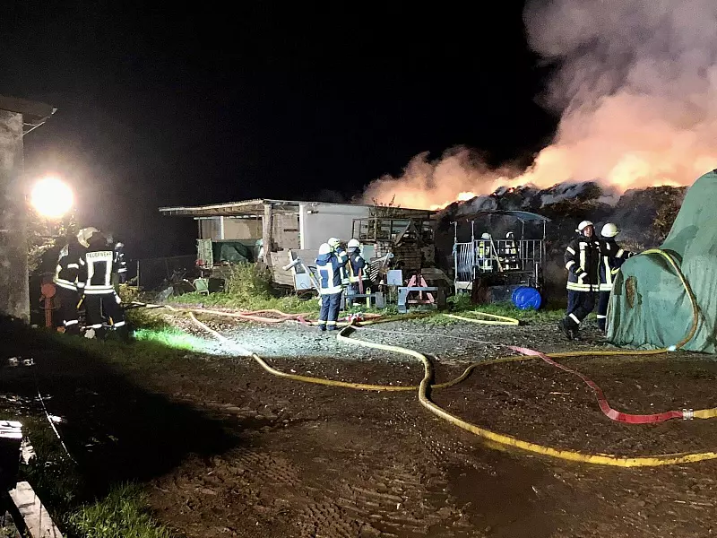 Extertal-Bösingfeld. Bis zum Nachmittag ist die Feuerwehr Extertal am Mittwoch mit einem Brand bei einem landwirtschaftlichen Betrieb im Heideweg beschäftigt gewesen. Mehr als 100 Strohballen, laut Polizei rund 130 Ballen, standen in Flammen. Gegen 5.11 Uhr am Morgen sei die Feuerwehr alarmiert worden.