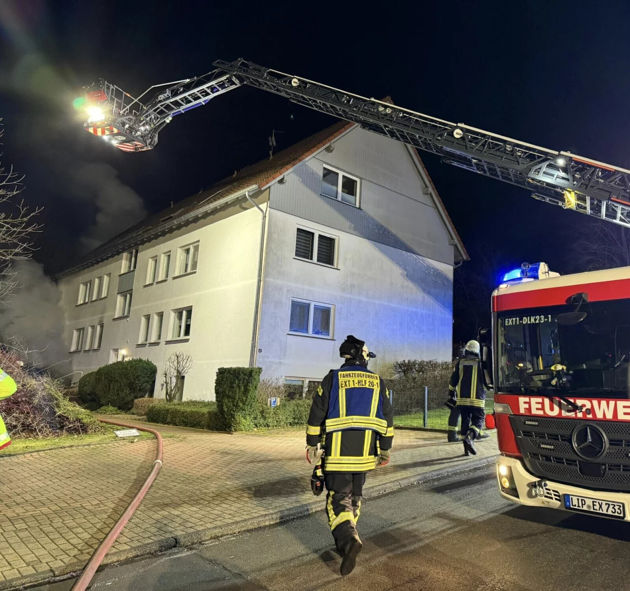 Extertal-Bösingfeld. Unter dem Stichwort „Menschenleben in Gefahr“ ist der Löschzug Bösingfeld am Donnerstagabend gegen 22.10 Uhr zum Brand einer Kellerwohnung in der Birkenstraße gerufen worden. Bereits auf der Anfahrt hätten die Einsatzkräfte die Meldung bekommen, dass sich noch 19 Personen in dem Haus befinden würden, schreibt die Feuerwehr.