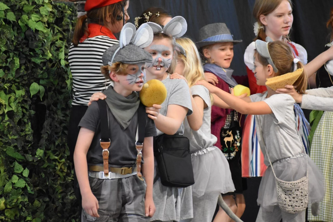 „Alle waren hochkonzentriert, spielten ihre selbstgewählten Rollen grandios, sangen munter alle Lieder, meisterten Szenenwechsel, Chorgesang, Sologesang, Tanzeinlagen und verbale Schlagabtausche – mit einer Selbstverständlichkeit wie die Profis“, heißt es weiter. Die Bewohner des „Landes Käsien“ wurden begleitet von der Combo der Musikschule Extertal „Querbeats“, für die ihr Leiter Timur Isakov die Vorlage arrangiert hatte, und vom Erwachsenen-Chor „Chorios Dörentrup“ unter der Leitung von Sandra Lücke, die auch die Gesamtleitung des Projektes innehatte.