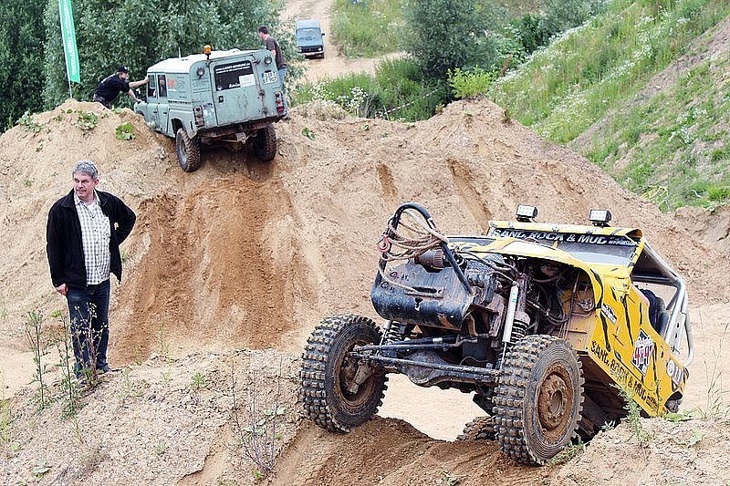 Ansonsten konnten die Offroader die kleinen Hügel mit Neigungen bis 45 Grad und Wandhöhen bis zwölf Meter nach eigenen Vorstellungen und Fähigkeiten ausreizen. Die Schrägfahrt bei 30 Grad, die Durchquerung des Wasserlochs, das Überfahren von Geländekanten oder die Wahl der Kurvenkombinationen, die eigentlich gar nicht möglich erschienen, sind eine Herausforderung für die Fahrer. Frank Treppner hatte auf dem gesamten Gelände "Erste-Hilfe-Tonnen" mit Feuerlöscher, Ölbinder und etwas Werkzeug verteilt. Die blieben lediglich Dekoration, die Muskelkraft beim Anschieben, das Abschleppseil als Anfahrtshilfe oder die Eichenbohle als Alternative für den Sanduntergrund aber wurden schon immer mal wieder in Anspruch genommen, wenn das Austesten des Grenzbereiches mal wieder "erfolgreich" überschritten worden war.