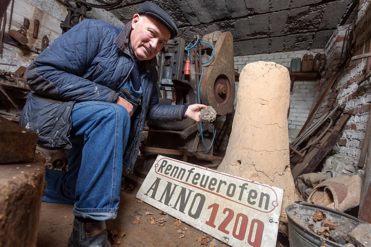 Horn-Bad Meinberg/Feldrom-Veldrom-Kempen. Eine auffällige Färbung des Wassers in seinem Ententeich hat Johannes Glitz stutzig gemacht. Er wurde neugierig und fragte sich, woher dieses Rostrot kommt? Als das Wasser der Durbeke im Herbst etwas weniger wurde, fand er schließlich die Antwort. Wo heute ruhig das Wasser steht, wurde vor mehreren Hundert Jahren Eisen hergestellt.