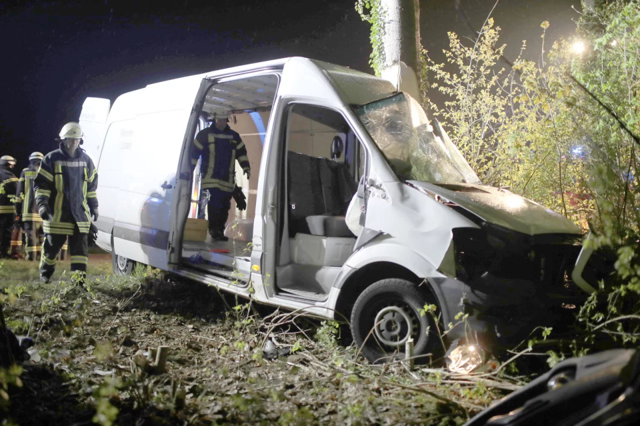 Der ungeladene Mercedes Sprinter wurde durch den Aufprall total zerstört. Es entstand Sachschaden in Höhe von etwa 33.000 Euro. Die Straße blieb für Bergungs- und Ermittlungsarbeiten der Polizei zwei Stunden gesperrt.