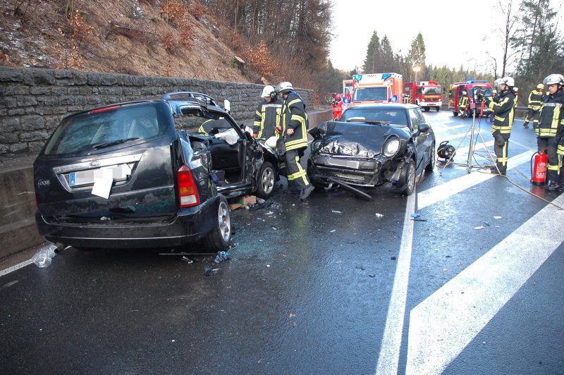 Zu dem Unfall sei es gekommen, da der Fahrer eines schwarzen Ford Focus bei einem Graupelschauer auf die Gegenfahrbahn schleuderte. Hier kollidierte er mit dem schwarzen Mini eines 48 jahre alten Mannes.
