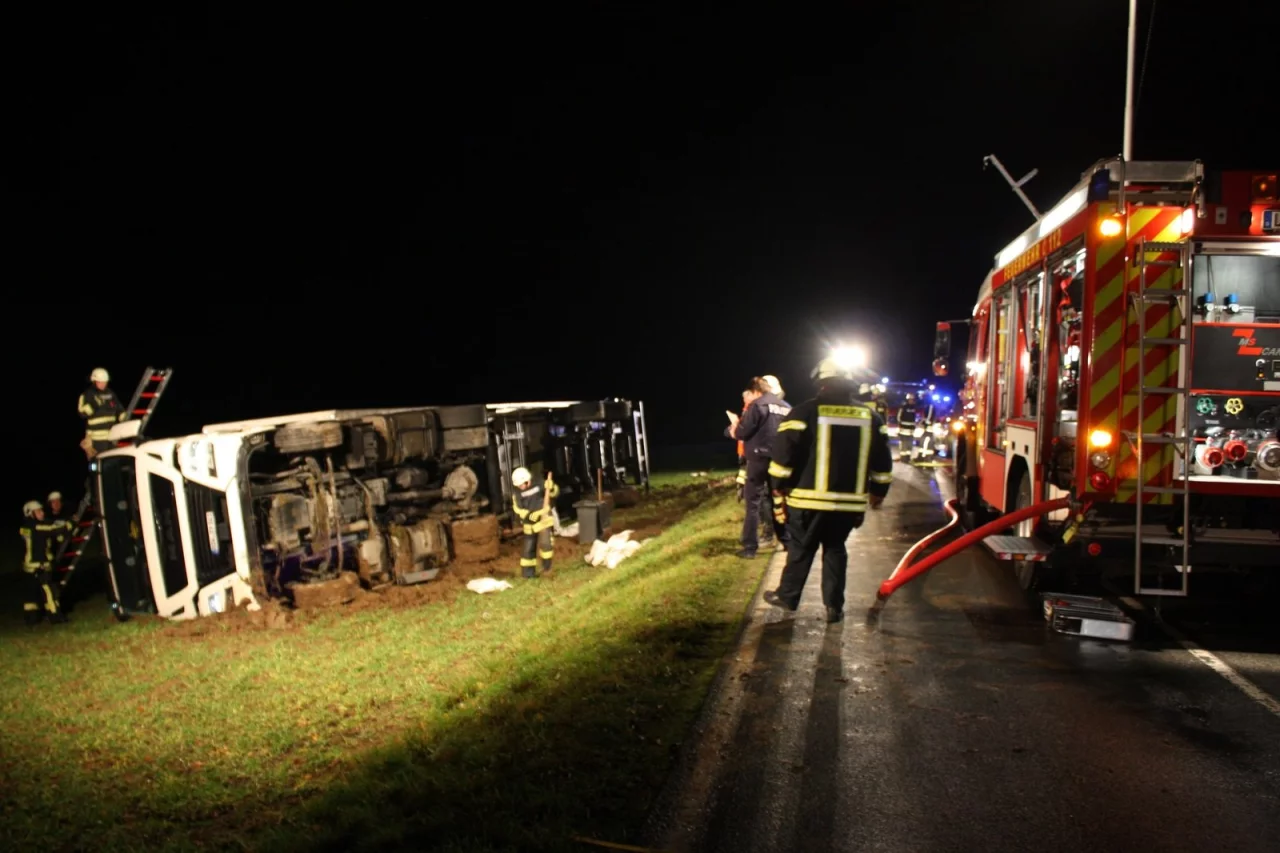 In dem voll gefüllten Tanksystem des Fahrzeugs hätten sich mehr als 1000 Liter Diesel befunden. Davon seien rund 800 Liter ausgelaufen, so dass nur ein geringer Teil von den Feuerwehrleuten aufgefangen werden konnte. Das Kreisumweltamt war vor Ort und sorgte dafür, dass der verseuchte Boden abgetragen wurde.