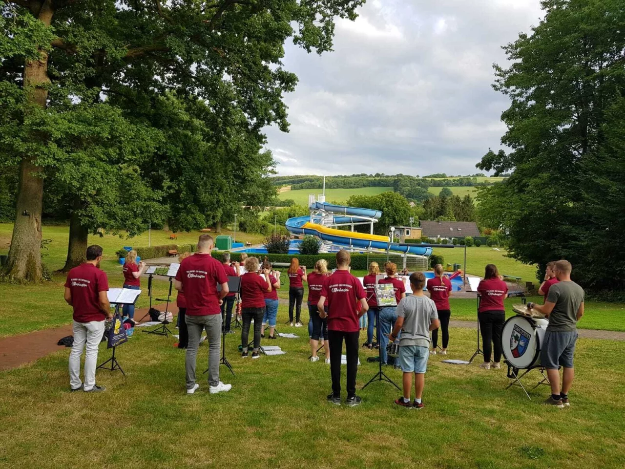 Horn-Bad Meinberg. Viel Spaß hatten die Musiker des Spielmanns- und Fanfarenzugs Ottenhausen bei ihrer jüngsten Probe "an einem ungewöhnlichen Ort". Diesmal haben sie im Waldbad Meinberg geprobt. Die Spielleute wurden bereits vom Förderverein des Bades erwartet und begrüßt. Extra für die Probe sei das Freibad länger geöffnet worden als üblich, berichtet der Spielmanns- und Fanfarenzug.