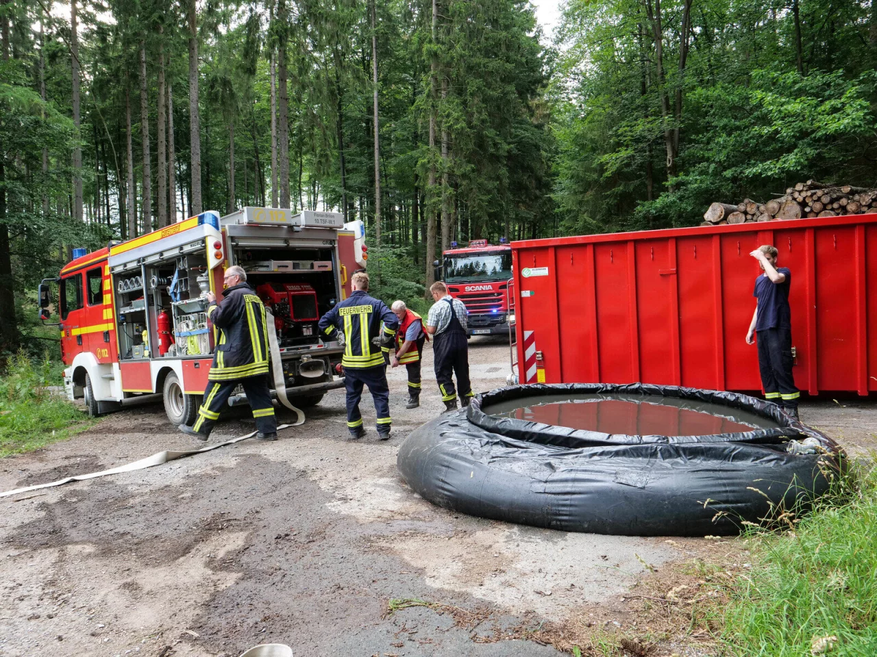 Auch eine Wasserentnahmestelle für den Hubschraubereinsatz wird in der Egge eingerichtet. Aus dem Kreisgebiet werden auch die Fahrzeuge des Löschwassertransportzuges und größere Tanklöschfahrzeuge der einzelnen Feuerwehren alarmiert. Auch das Technische Hilfswerk (THW) aus Paderborn ist mit einem 8000 Liter fassenden Fahrzeug im Einsatz. Die Leitung der Übung hat der Paderborner Kreisbrandmeister Elmar Keuter in seiner Funktion als stellvertretener Bezirksbrandmeister.