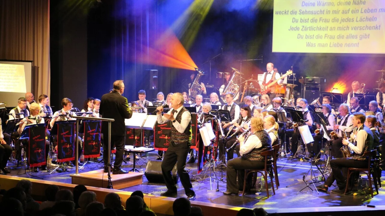 In diesem Jahr hatte Lothar Tarnow sich vorgenommen, im Verlauf des Programms mehrere Instrumentengruppen hervorzuheben und vorzustellen, um die Vielfalt der Orchesterbesetzung zu unterstreichen. So bewiesen die Waldhörner bei Kurt Gäbles „Hornfestival“ gekonnt, wie verträumt-schön, aber auch wie mächtig diese Instrumente klingen können. Die Saxofone überzeugten beim fetzigen „Let’s Play Sax“ und sorgten mit voller Besetzung von Sopran-, Alt-, Tenor- und Baritonsaxofonen für vollen Sound.