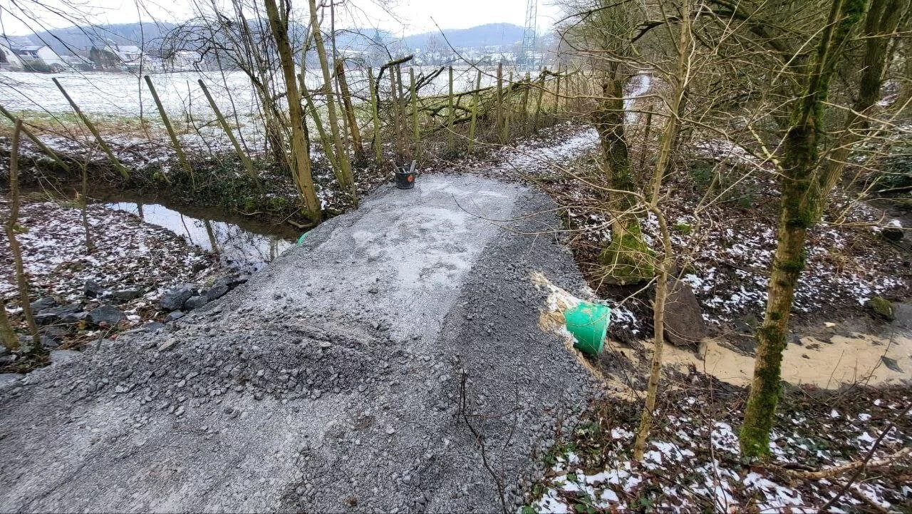 Horn-Bad Meinberg/Leopoldstal. Zum 32. Velmerstot-Volkslauf der am Samstag aus Leopoldstal startete, war die traditionelle Sportplatzrunde gestrichen worden. Stattdessen war für den Läufer-Nachwuchs - die Bambinis - eine neue Strecke durch das anliegende Wäldchen am Sportplatz ausgeschildert worden. Hierzu hatte es jedoch zunächst etwas Vorbereitung bedurft, da es bei einer der beiden Bachquerungen keine Brücke mehr gab. Hier schaffte der Horn-Bad Meinberger Bauhof kurzerhand Abhilfe und baute einen soliden Übergang aus Betonrohren, Sand und Schotter. „Mit dem neuen Lückenschluss können nun auch wieder Spaziergänger den Bach passieren und ihre Runden drehen. Ein Mehrwert fürs ganze Dorf.“, freute sich Lauftreffleiter Dennis Mattern vom TSV Leopoldstal.