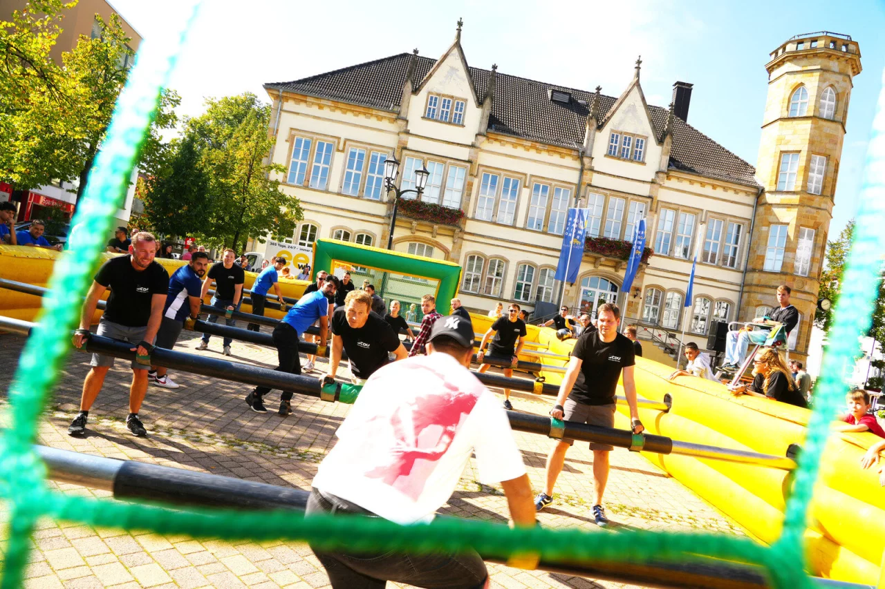 Anmeldungen für das Human Table Soccer–Turnier und Anfragen zu Vereinsständen nimmt Manfred Hütte, Tel. (05234) 202810, E-Mail: info@kurier-verlag.de, entgegen.