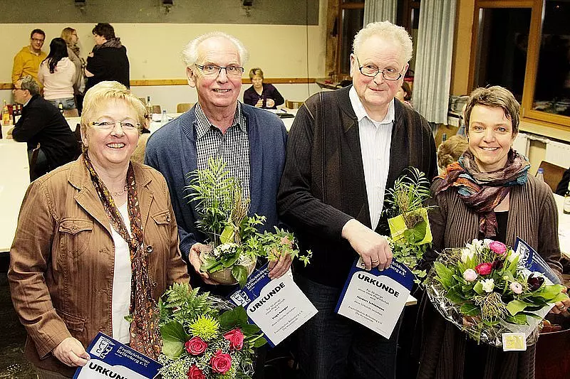 Für langes Engagement und Treue zur Freilichtbühne wurden an dem Abend außerdem fünf Mitglieder geehrt. Der Ehrenvorsitzende Herbert Schliemann ist seit 50 Jahren dabei, wie auch Hugo Kemper. Vorsitzende Ursula Tölle ist seit 40 Jahren bei der Bühne in Bellenberg. Seit 25 Jahren ist Stefanie Holzgräwe Mitglied, ebenso wie Heike Klare, die in Abwesenheit geehrt wurde. Den Jubilaren überreichte der Vorstand der Freilichtbühne Blumen und Urkunden.