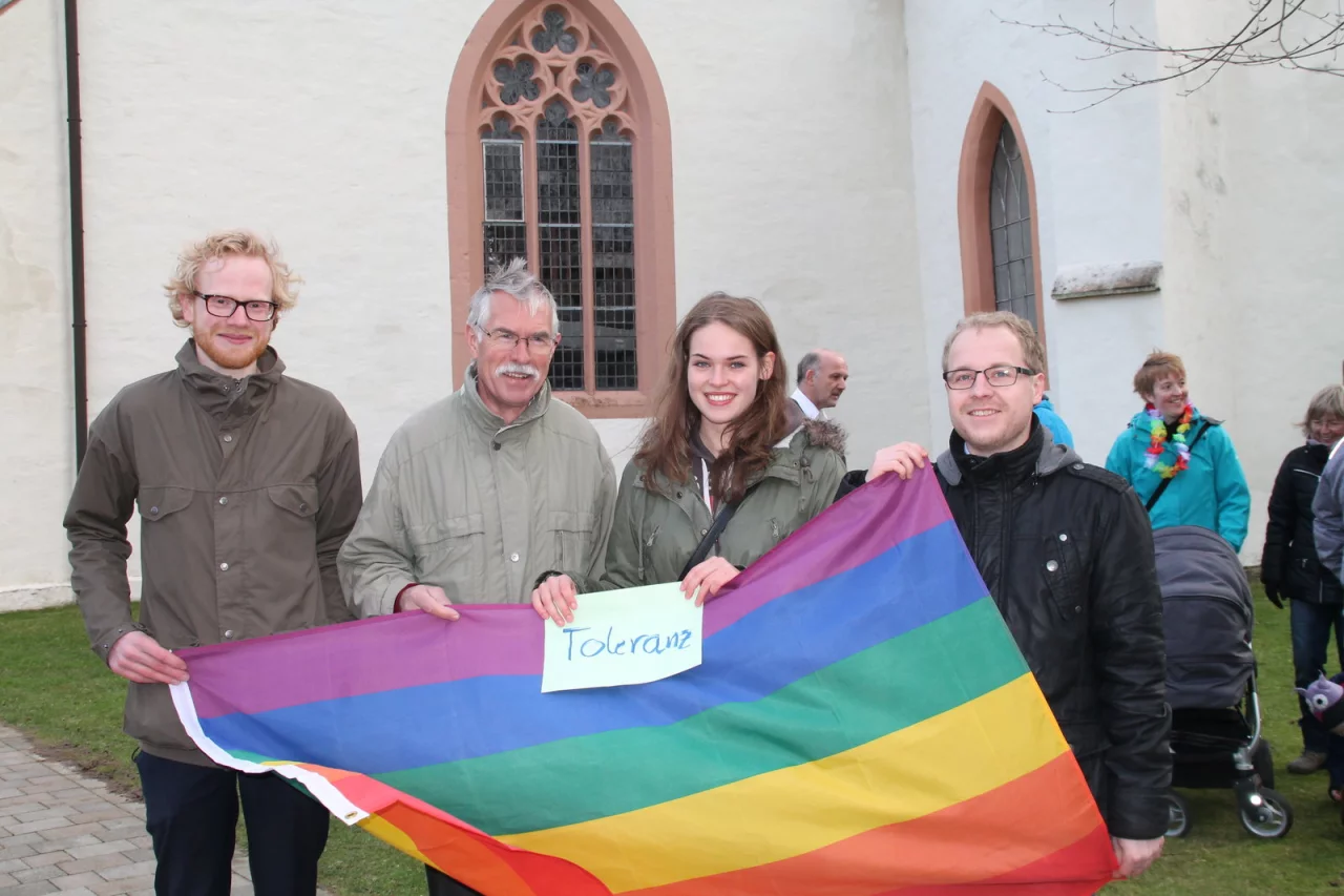 Gleichzeitig waren etwa 100 Bürger mit Regenbogenflaggen vor die Pauluskirche gekommen, um gegen die Schrift zu protestieren. Dazu hatten Dominic und Joachim Prüßner aufgerufen. „Homosexualität in die Nähe von Sodomie oder Pädophilie zu bringen, widerspricht unserem Verständnis von einer offenen Gesellschaft und beinhaltet menschenverachtende Äußerungen der Pastoren“, betonten sie. „Diese Nachrichten aus unserer alten Heimat haben uns zutiefst beschämt.“