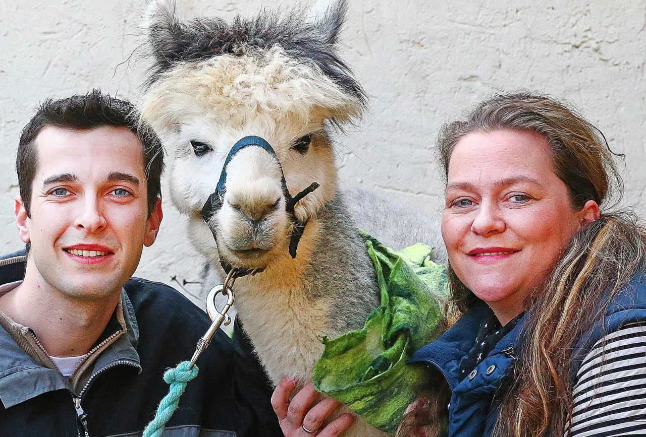 Und was muss man zuerst lernen? Sabine Stock: "Alpakas sind intelligent und neugierig, aber keine ausgesprochenen Kuscheltiere. Einige lieben das Streicheln, aber nur so lange, wie es ihnen passt. Wichtig: Möglichst nicht den Kopf berühren, das mögen sie gar nicht." Und spucken können sie natürlich auch - aber nur untereinander. Sollte doch mal ein Mensch getroffen werden, ist das meist nur ein Versehen.