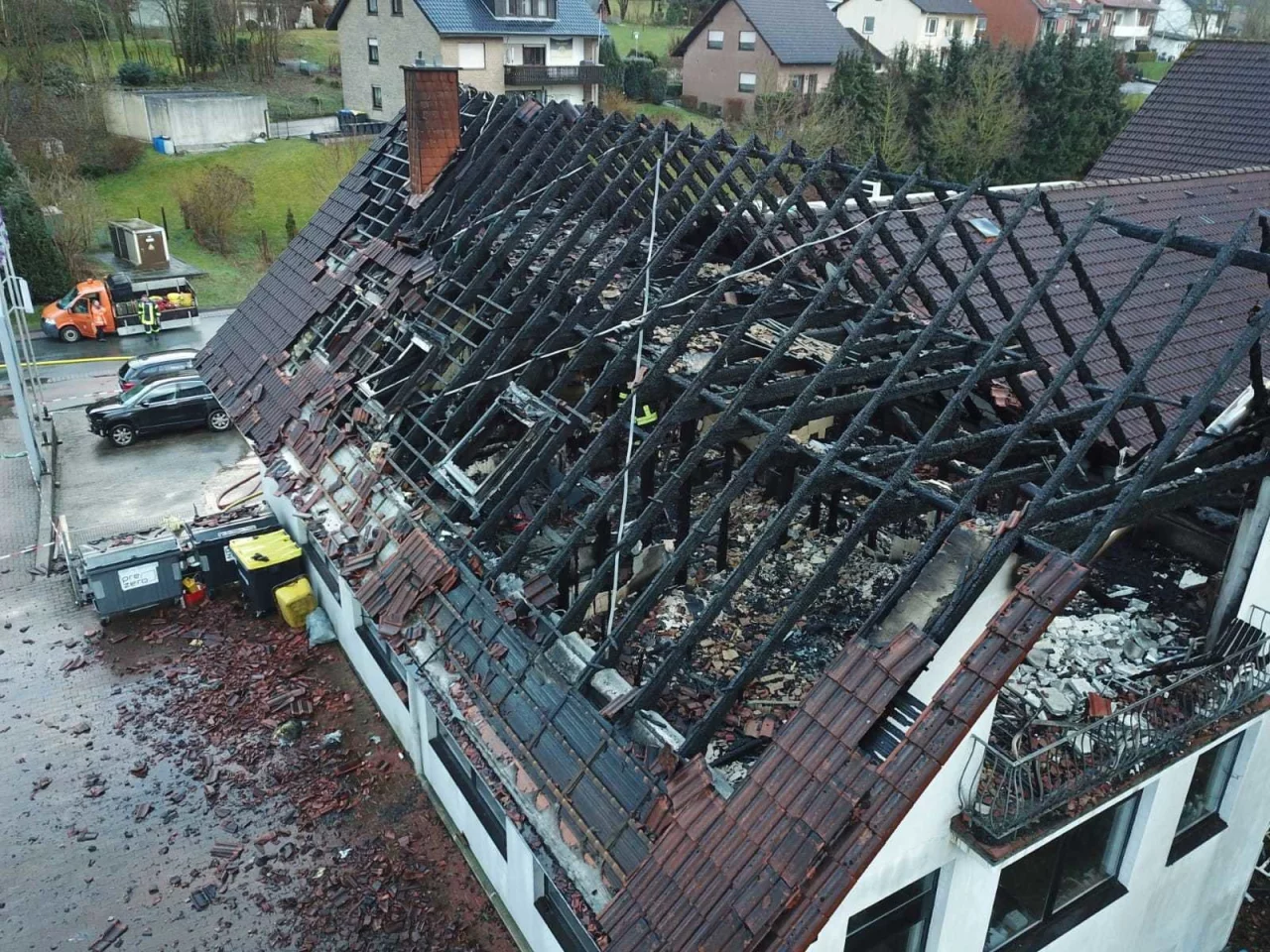 Zwei Einsatzkräfte wurden bei dem Einsatz leicht verletzt. Brandursache und Schadenshöhe sind nicht bekannt. Brandursachenermittler der Kriminalpolizei werden ihre Arbeit am Sonntag aufnehmen.