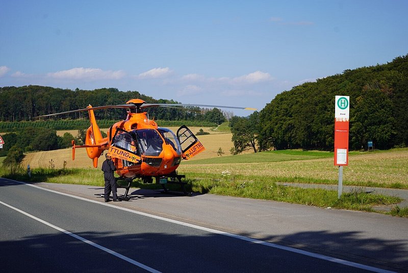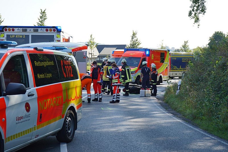 Durch den Unfall wurde der Motorradfahrer so schwer verletzt, dass die Einsatzkräfte den Rettungshubschrauber Christoph 13 orderten, der den Verletzten in das Herforder Klinikum brachte. Im BMW wurde ein Ehepaar aus Kalletal verletzt. Der 28-jährige Fahrer kam schwerverletzt mit dem Rettungswagen in das Klinikum Lemgo. Seine 28-jährige schwangere Ehefrau erlitt leichte Verletzungen, ein Rettungswagen brachte sie nach Detmold in die Klinik.