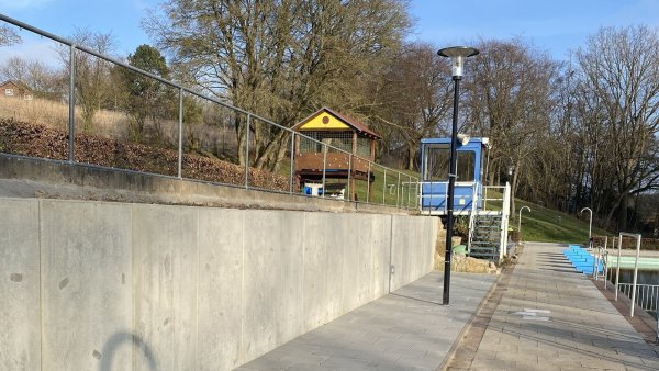 Der Freibadverein hat mithilfe von Fördergeldern einen Hang entfernt und dort eine Stützwand errichtet. Diese soll noch bunt gestaltet werden.