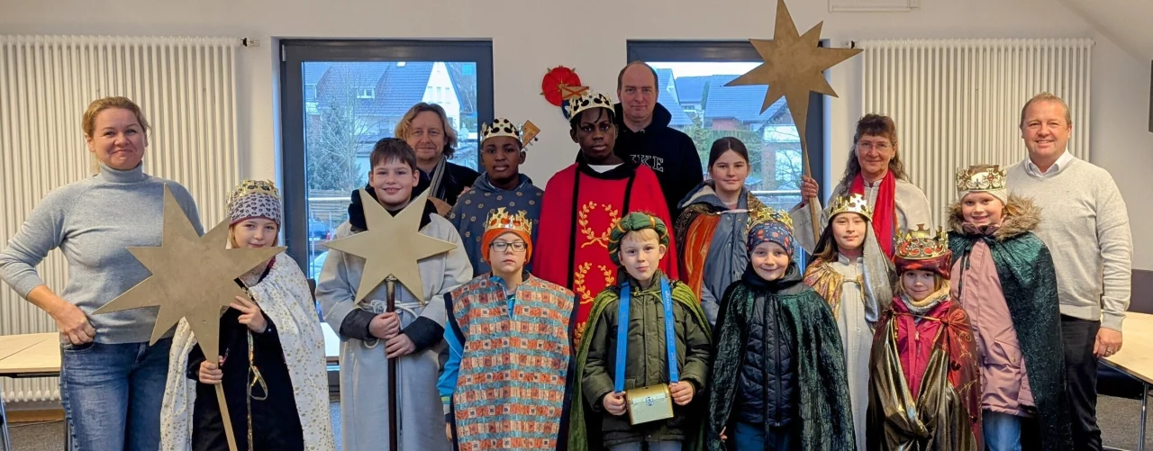 Kalletal-Hohenhausen. Die Sternsinger der katholischen Gemeinde St. Marien Hohenhausen und der evangelisch-reformierten Kirchengemeinde Talle haben zu Jahresbeginn Bürgermeister Mario Hecker und Fachbereichsleiterin Ewa Hermann im Kalletaler Rathaus besucht und über der Eingangstür zum Sitzungssaal den Segenswunsch „20*C+M+B+25“ angebracht. An diesem Ort gelte dieser Segen ganz besonders für die Bewahrung der Demokratie als ein zentrales Anliegen in vielen Gesellschaften, wie sich die Sternsinger laut Mitteilung der Gemeinde Kalletal einig sind.