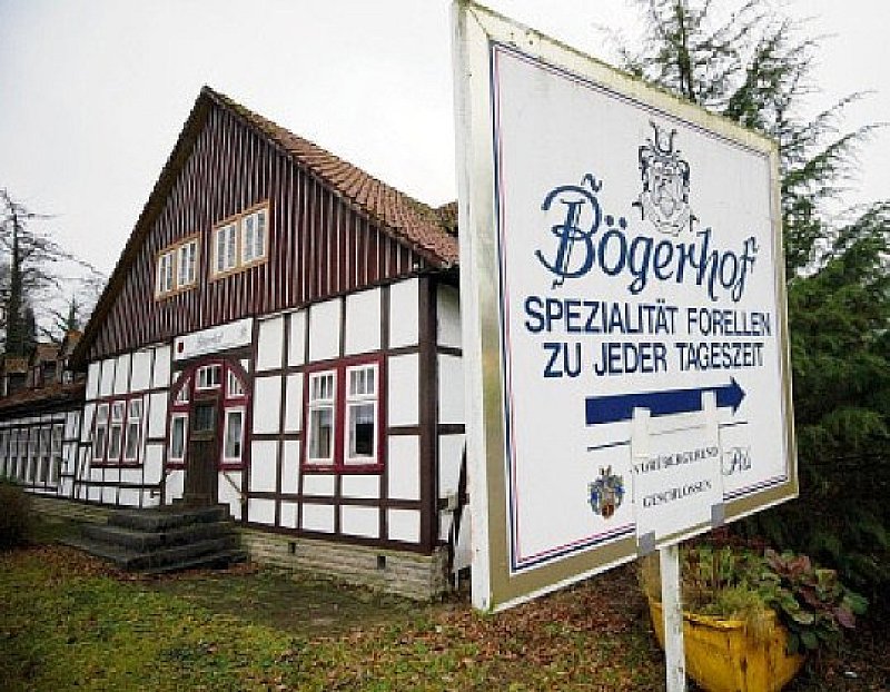 Früher war das seit Generationen von der Familie Böger bewirtschaftete Anwesen eine große Forellenzucht mit beliebtem Ausflugslokal. Die guten Zeiten waren jedoch vorbei, als der "Bögerhof" zwangsversteigert wurde. 2003 fand bereits der zweite Termin statt, und danach hätte sich mit Günter Beyer, der bekanntlich in Kükenbruch seine Biker-Kneipe betreibt, fast eine Lösung gefunden. Aber beim entscheidenden Versteigerungstermin fiel der Hammer für einen anderen, ebenfalls in Kükenbruch wohnenden Interessenten, der ein höheres Gebot abgegeben hatte.