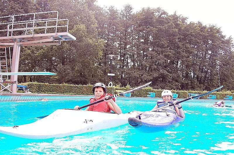 Kalletal-Hohenhausen (mm). Mit dem Kanu durchs Schwimmerbecken kreuzen: Statt die Rutsche im Bad herunterzusauen, haben die Brüder Alexander und Christoph Maaß das Kajak-Fahren für sich entdeckt.