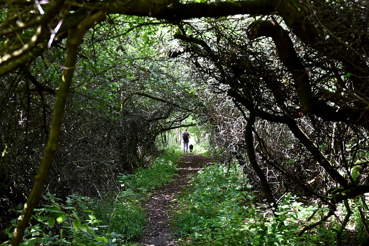 In Begleitung von Freundin und Hund mache ich mich dazu auf eine knapp elf Kilometer lange Tour, die die Wandergruppe des TBV Alverdissen Zwerg Anton gewidmet hat. Los geht es am Freibad, hier taucht das erste Schild mit dem Zwergensymbol auf, das uns auf dem Trip den Weg weisen wird.
