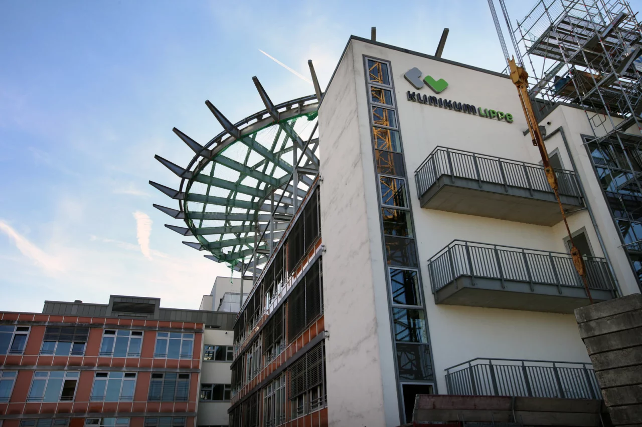 Als nächstes werden eine „Gangway", die direkt zu den Aufzügen führt, und ein Steuerplatz gebaut. „Der Hubschrauber wird quasi immer in Empfang genommen. In dem Häuschen wird es ein Telefon und ein Pult samt Computer geben, über den unter anderem die Positionslichter geschaltet werden", erklärt Christoph Potthast, Architekt des Klinikums Lippe.