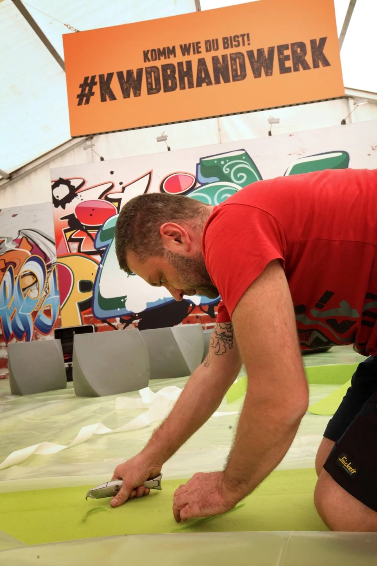 Zum Kennenlernen gibt es informative Gespräche mit erfahrenen Mitarbeitern sowie viele Mitmachaktionen, zum Beispiel elektronische Schaltungen löten oder Fotoshootings für die Bewerbungsmappe. Erstmals findet die Messe Donnerstag und Freitag von 8 bis 17 Uhr statt, der früher übliche Samstag entfällt. Das Vorziehen um einen Tag sei mit Rücksicht auf die Schulen erfolgt, sagte Stefanie Schöpe, Messeansprechpartnerin bei der IHK. Unser Bild zeigt Messebauer Alexander Wall am Stand der Kreishandwerkerschaft.