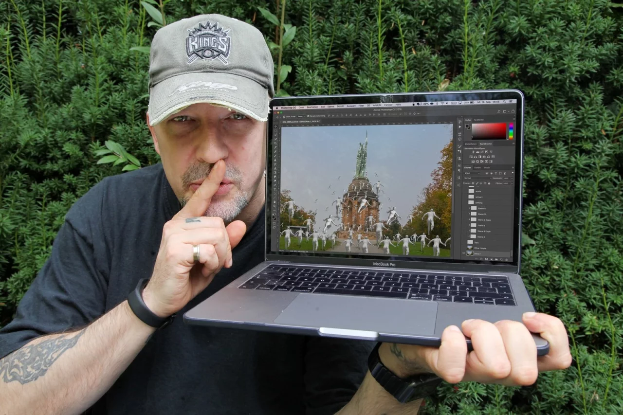 Bei einem Wimmelbild würden prägnante Plätze oder Denkmäler, in diesem Fall das Hermannsdenkmal, menschenleer fotografiert und später mit vielen Menschen und lustigen Szenen gefüllt. Die Teilnehmer müssten gar nicht so viel machen – „sie stehen oder liegen in bestimmten Posen auf einer Bank vor grünem Hintergrund, das erleichtert mir später die Fotografierten für die Montage am Computer auszuschneiden", sagt Kunisch.