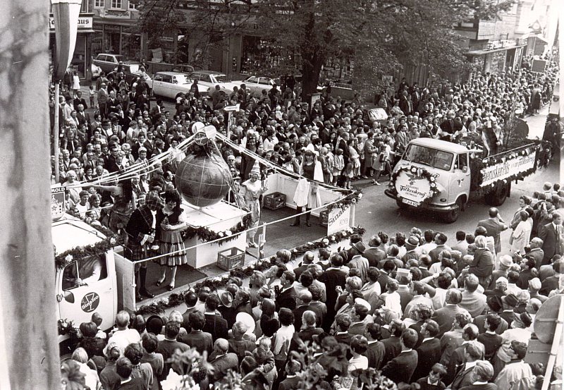 In Detmold ist im September 1968 ganz schön ’was los. Beim Festumzug zum Auftakt der Heimattage präsentieren sich lokale Firmen wie etwa Sinalco und die Falkenkrugbrauerei, die bis 1972 in Detmold ihr Cherusker Pils braute. Auf dem Marktplatz verfolgen 12.000 Zuschauer den Umzug. Etwas unglücklich war hingegen die Nachbarstadt Lemgo. „Man hat uns völlig links liegen lassen!", wird Lemgos damaliger Bürgermeister August Flohr im Anschluss an das Fest in einem LZ-Artikel zitiert. Schließlich habe man sich finanziell mit 5000 Mark an den Heimattagen beteiligt, sei aber bei dem Umzug kaum vertreten gewesen.