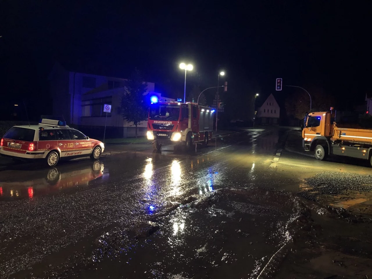 So war Land unter in einigen Dörfer, darunter Hembsen und Erkeln. Das Wasser stand auf der Bundesstraße 252 (Ostwestfalenstraße) fast knietief. In Warburg wurde die Unterführung am Bahnhof zu einem Schwimmbad für Autofahrer. Die konnten sich teilweise nur mit Mühe auf den Straßen halten und angesichts der Wassermenge auf den Fahrbahnen nur sehr langsam vorankommen. Unter Bäumen entwickelten sich auf den dicken Blätter-Meeren gefährliche Rutschbahnen. Denn die Gullis konnten die Wassermenge in so kurzer Zeit nicht mehr aufnehmen.