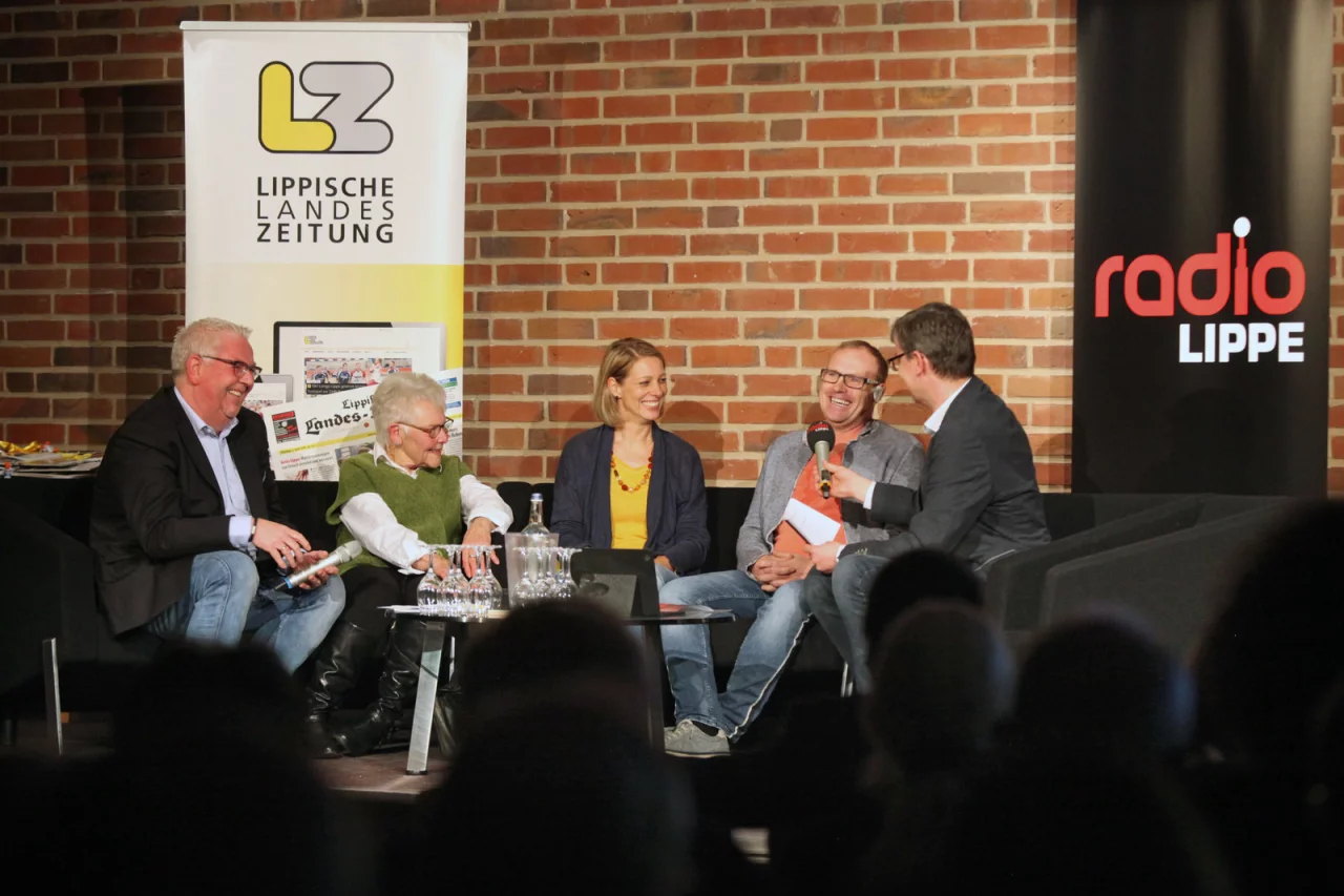 Lage. Auf dem Sofa zwischen den Chefredakteuren Dirk Baldus (LZ) und Markus Knoblich (Radio Lippe) nahmen Ende November 17 Gäste Platz, um beim ersten Jahrestalk von LZ und Radio Lippe ihre Geschichten zu erzählen. Rund 160 Zuschauer erlebten im Ziegeleimuseum Lage, laut Gastgeber und Museumsleiter Willi Kulke „der coolste Ort in der Umgebung", einen kurzweiligen Abend. Wer nicht dabei sein konnte, kann sich den Talk jetzt noch einmal in verschiedenen Videos anschauen.