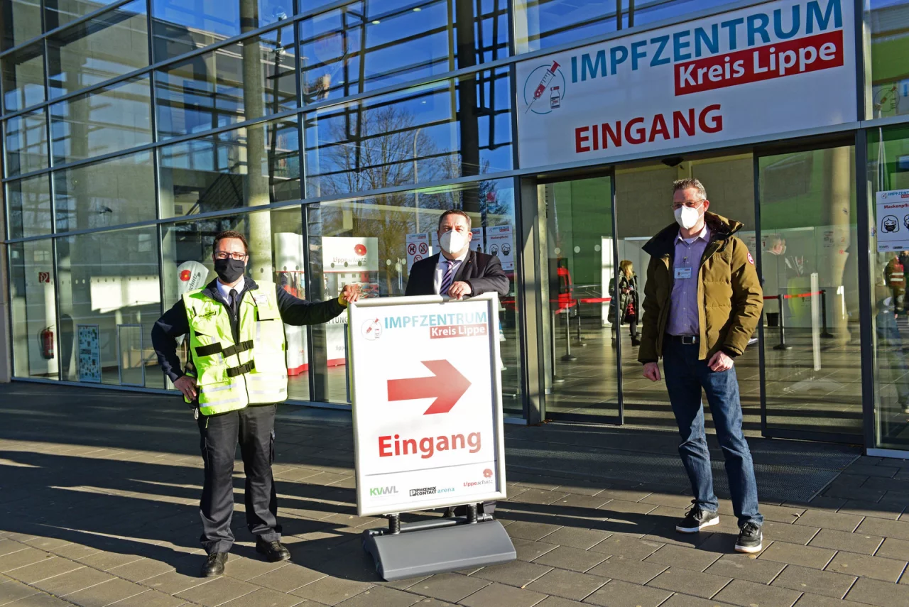 Als „Licht am Horizont" bezeichnet Landrat Dr. Axel Lehmann das Impfzentrum für den Kreis Lippe, in das nicht zuletzt viele seiner Mitarbeiter unzählige Stunden Arbeit investiert haben. Die Organisation des Impfzentrums ist nämlich Sache des Kreises Lippe, den medizinischen Part übernimmt die Kassenärztliche Vereinigung Westfalen-Lippe (KVWL). „Allein die flächendeckende Impfung kann der Ausweg aus den Maßnahmen sein", betont Lehmann und appelliert gleichzeitig an alle Bürger, diesen Schritt zu gehen. „Wenn sich möglichst viele impfen lassen, können wir im Sommer aus der unangenehmen Situation rauskommen." Dr. Christian Körner, Leiter der Bezirksstelle Detmold der KVWL, spricht sogar von 60 Prozent, die geimpft werden müssen, um die Pandemie bekämpfen zu können.