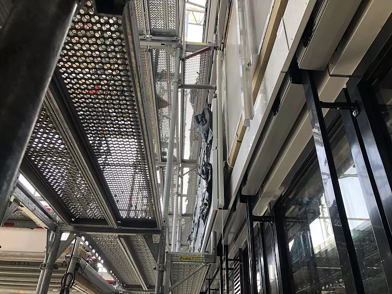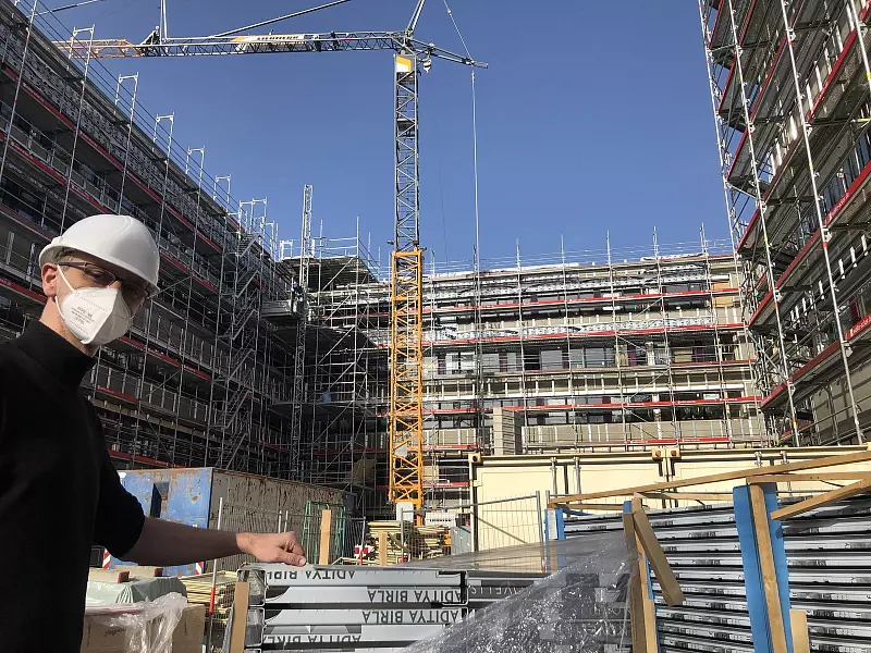 Es gibt außerdem neue Sanitäranlagen und verbesserten Brandschutz. Es geht um Klimaschutz. Das Ziel des gesamten Projektes ist, 3900 Tonnen CO2 im Jahr einzusparen. Die erste Erfahrung: An den kalten Tagen Anfang Februar lief die Heizung in den Büros hinter der bereits erneuerten Außenhaut nur auf Minimum.