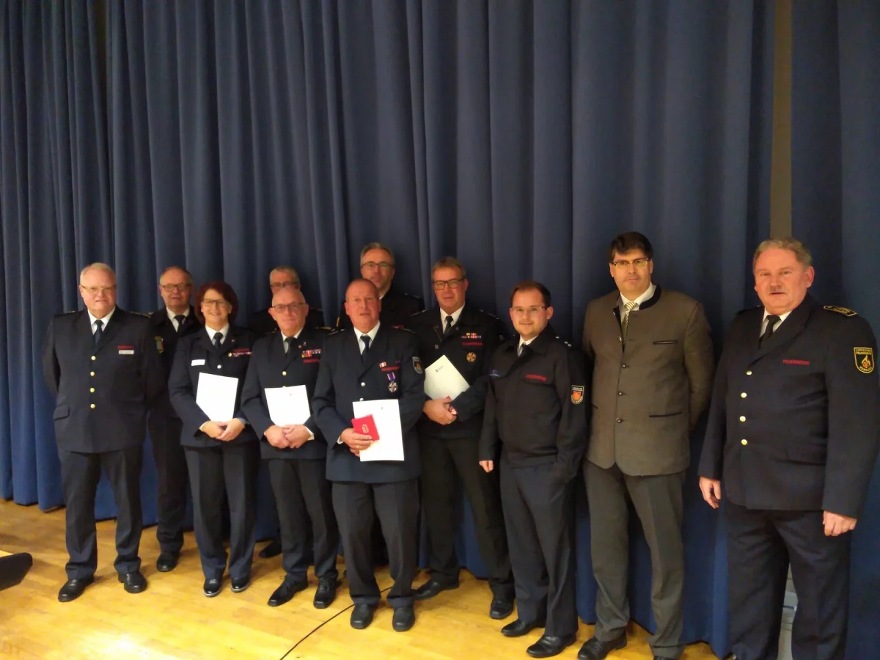 Der stellvertretende Bezirksbrandmeister Elmar Keuter hob den Einsatz nach der Flutkatastrophe in Euskirchen der Bereitschaft 4 der Bezirksregierung Detmold hervor. Überdies zeichnete er den Kreisbrandmeister a.D. Karl-Heinz Brakemeier mit der Silbernen Ehrennadel des Deutschen Feuerwehrverbandes aus. Mit dieser werden bei der Feuerwehr Menschen geehrt, die besonders aktiv und erfolgreich die Aufgaben und Ziele der Feuerwehrverbände gefördert haben.