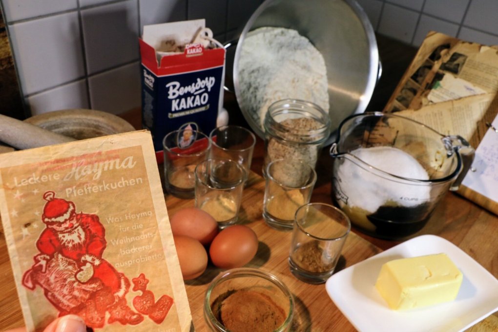 Ein Film über Ostpreußen gibt Aufschluss. Der Teig wurde schon im späten Sommer hergestellt, wenn das Mehl frisch geerntet und die Eier frisch gelegt sind. In großen Holzkisten durfte er im Keller reifen, bis dann im Winter die ganze Familie zum Backtag antrat. Nach vielen Telefonaten habe ich ein Rezept in der Hand, das mutmaßlich meine Oma benutzt haben soll. Und siehe da: Schon bald blubbert der Sirup und der Duft nach Weihnachten füllt den Raum.