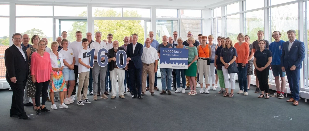 Detmold. Sie ist die älteste Wurzel der Verbundvolksbank OWL: In diesem Jahr feiert die Volksbank Detmold ihr 160-jähriges Jubiläum. Aus diesem Anlass verteilte das Geldinstitut jetzt 16.000 Euro an 32 Vereine aus dem Kreis Lippe.