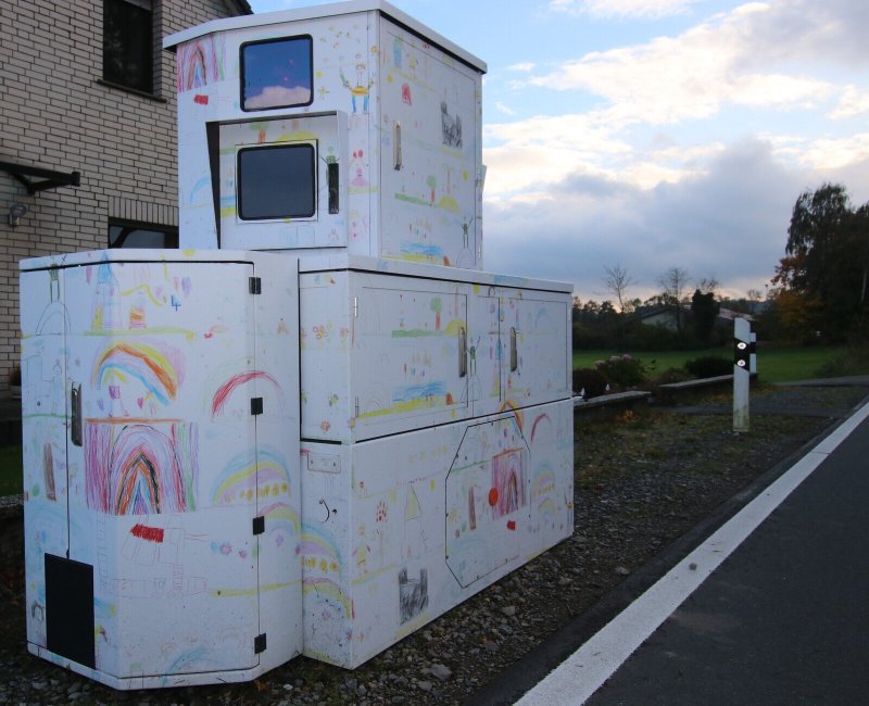 Kreis Lippe. Mit von Kinderhand gemalten Bildern ist jetzt der mobile Blitzeranhänger „Hermann“ des Kreises Lippe verschönert worden. Das kunterbunte Gewand ist laut Pressemitteilung des Kreises Lippe eine Collage aus Bildern, die die Kinder einer Schlänger Kita gemalt haben. „Der Blitzeranhänger war wiederholt mit Farbe beschmiert und besprüht worden, um ihn funktionsunfähig zu machen“, erinnert Stephan Bethge, Leiter der Verkehrsüberwachung des Kreises Lippe. Weil „Hermann“ eine raue Oberfläche habe, sei die Reinigung jeweils aufwendig gewesen.